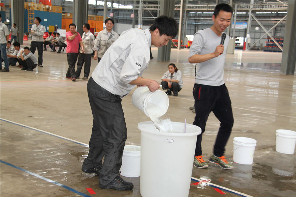 下午13:30在運(yùn)動(dòng)場(chǎng)出現(xiàn)了擺放有序的水桶,這是我們的第二項(xiàng)活動(dòng):精益運(yùn)輸大接力,取水點(diǎn)的距離分別大于等于10米,每個(gè)桶分別裝滿10L水,每組隊(duì)員是五個(gè)人,要在120秒內(nèi)完成大桶水量的收集,超過120秒的隊(duì)員淘汰出局,在規(guī)定的時(shí)間內(nèi),水量收集多者獲勝,抽簽決定出場(chǎng)順序,這項(xiàng)活動(dòng)是讓員工明白精益化生產(chǎn)體系的精髓所在之處;減少過程浪費(fèi),實(shí)現(xiàn)低成本的快速交付,滿足客戶的同時(shí),做到細(xì)節(jié)控制,提升產(chǎn)品使用價(jià)值,提升公司盈利空間。比賽開始了只見隊(duì)員雙手提起20L的水往下一站的隊(duì)友那里送,中間會(huì)有灑水會(huì)很累,但是每個(gè)人都為了自己隊(duì)伍的榮譽(yù)拼盡全力向終點(diǎn)奔去,旁邊的隊(duì)友為他們加油、吶喊,最終自焊獲得第一名。